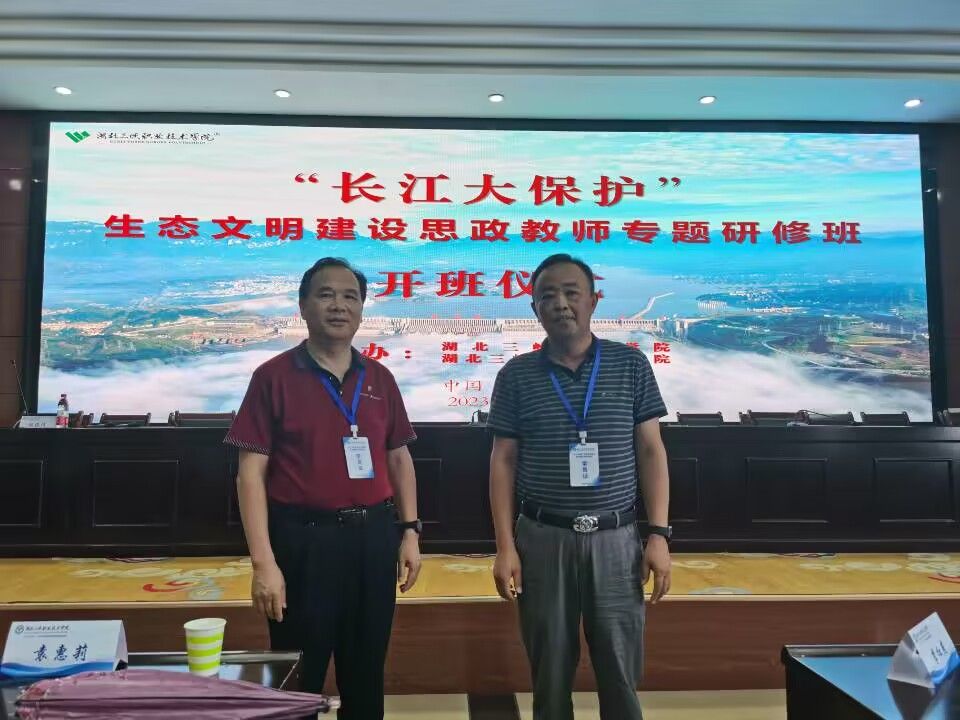 7月21日至27日,beat365教师胡顺和常卫峰受邀参加了湖北宜昌干部学院和三峡职业技术学院联合主办的“长江大保护”生态文明建设思政教师专题研修班的培训学习。本次研修学习旨在深入贯彻习近平新时代中国特色社会主义思想和党的二十大精神,学习贯彻习近平生态文明思想,以三峡库区生态文明建设与绿色发展实践为教材、案例,探索“大思政”建设规律,在长江文化底蕴和三峡生态环境中,通过专题讲授、理论研讨、现场教学来提升思政教师的政治素质、理论水平和实践教学能力。通过专题教学为老师们讲好习近平生态文明思想提供了素材,通过现场教学提高了党建引领绿色发展的认识、增强了绿水青山就是金山银山的理念,做到学思用贯通、知信行统一,将所学内容与自己今后的教学形结合,引导学生成为践行习近平生态文明思想的实践者。