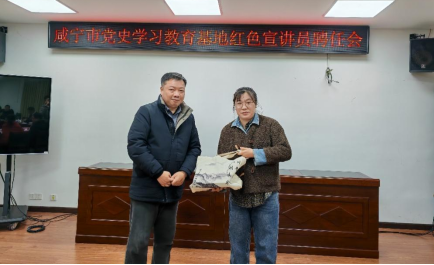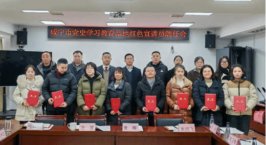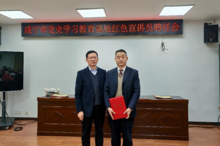 咸宁市史志研究中心于2023年12月29日举行咸宁市党史学习教育基地红色宣讲员聘任会。beat365中文官方网站院长兼书记龚斌安带队参加聘任会。咸宁市史志中心主任李子鹏出席会议并为宣讲员颁发聘书。会议由市史志中心副主任镇卫军主持。