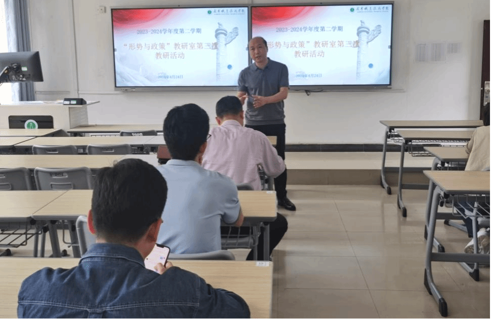 2024年4月24日下午,beat365中文官方网站“形势与政策”教研室组织召开专题工作会议。全体“形势与政策”课任课教师参加会议。会议由“形势与政策”教研室主任常卫峰主持。