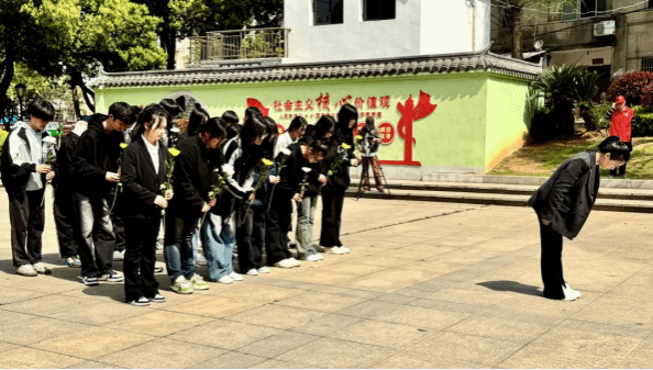 驻足在墓碑前,余老师动情讲述着烈士们的感人事迹,同学们怀着崇敬的心情为烈士们敬献鲜花。其中一名参与活动的学生感慨道:先烈们用自己的行动书写着信仰的力量,他们用生命换来今天的安宁,我们更应珍惜时光、奋发图强”。