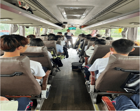 当日 7 时 45 分,研学团队集合完毕。丁胜实老师现场讲解活动目的、任务安排与纪律要求,董春燕、廖金果老师担任“安全队长”,确保行程安全有序。