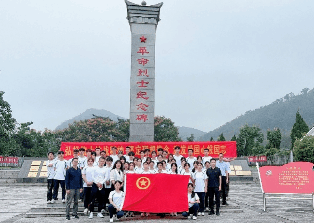 师生在革命烈士纪念碑前合影留念