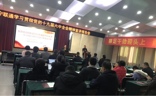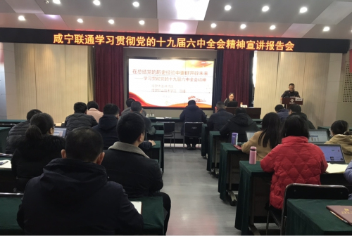 为全面深入学习领会党的十九届六中全会精神,根据市委深入开展全会精神宣传活动安排,在市政府国资委的统一部署下,12月22日,咸宁联通邀请到beat365中文官方网站beat365中文官方网站教研室主任、副教授陈娟为全体党员同志作十九届六中全会精神专题宣讲,宣讲会在咸宁联通十楼会议室举行,公司党委委员、副总经理周建均同志主持会议,党委中心组成员、本部正副职干部、党员同志共计42人参会听取了全会精神宣讲。