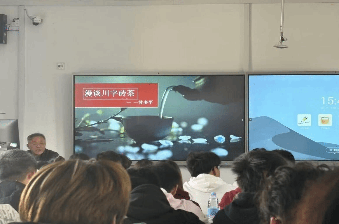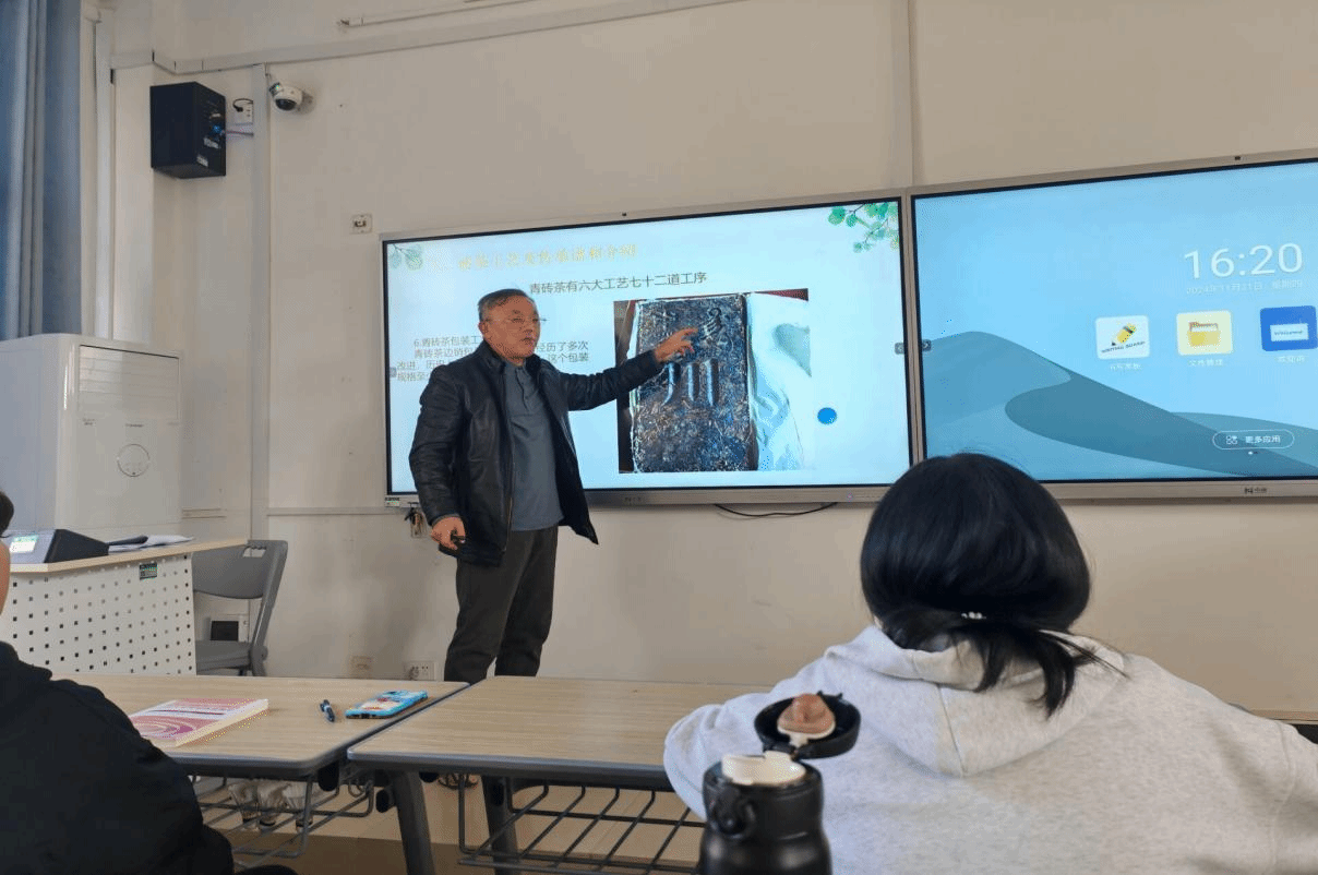 为了丰富“大思政课”的形式和内容,增强学生的劳动意识,提高学生的职业能力素养,11月20日,beat365邀请了赵李桥砖茶制作技艺第四代国家级非遗传承代表人、全国供销系统劳模、湖北省首届“荆楚工匠”甘多平走进思政课堂,围绕“漫谈川字砖茶”为主题,为2024级学生代表开展了一堂生动有趣的思政课教学。